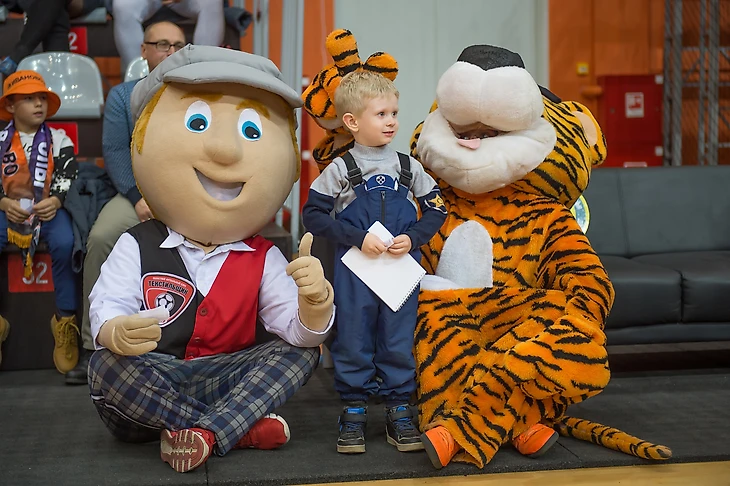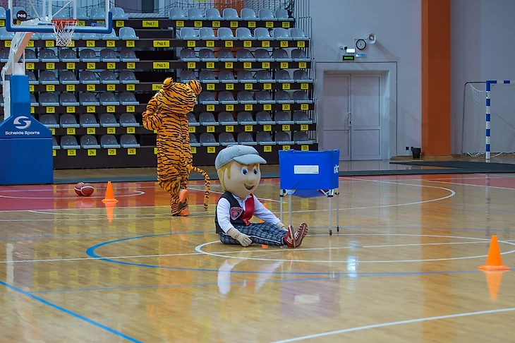 Тренировка открылась битвой маскотов: тигренок Вольт противостоял задорному Ваньку. По правилам они должны были пробежать с мячом по залу и положить его в корзину (и так три раза). Победа в конкурсе досталась более расторопному Вольту, а его коллеге, вероятно, не хватило опыта (на стадионе «Текстильщика» Ванек появился только в нынешнем сезоне).