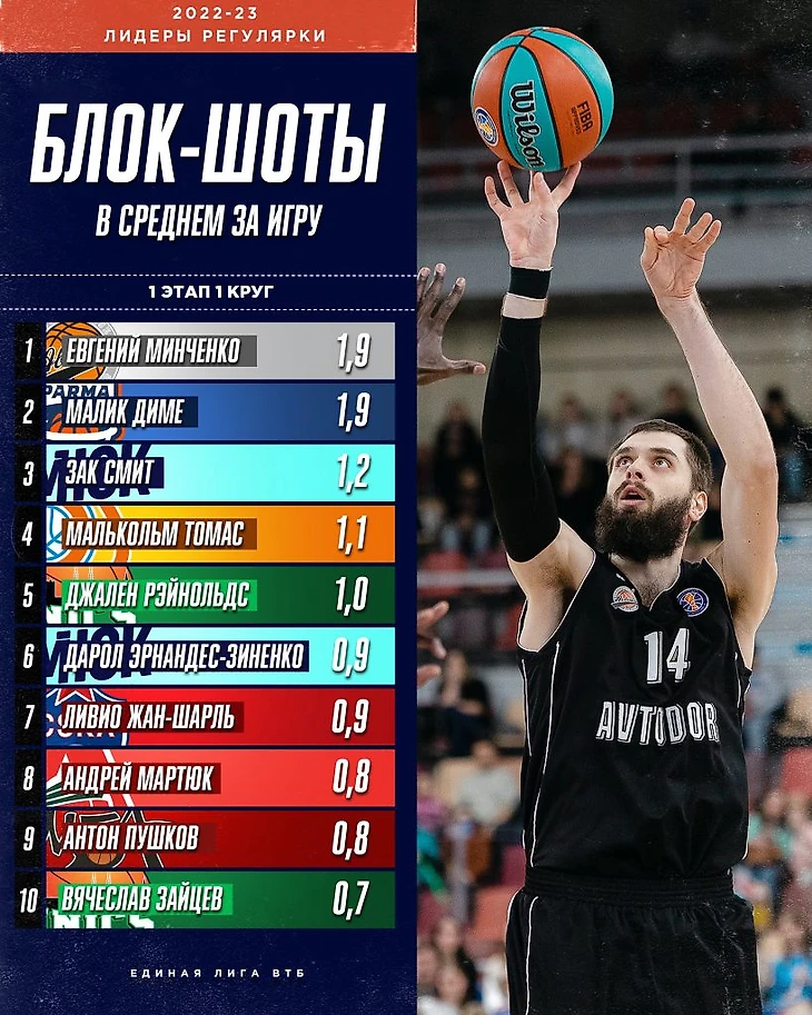 Центровой «Автодора» Евгений Минченко демонстрирует лучшие цифры по блок-шотам в карьере. Российский «большой» заблокировал уже 21 бросок – это больше, чем за весь прошлый сезон (12). Ему же принадлежит и рекорд сезона по блок-шотам – 6 в игре с «Пари НН».