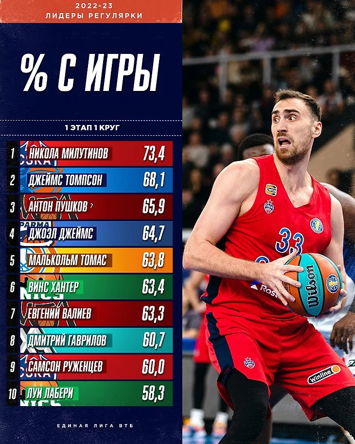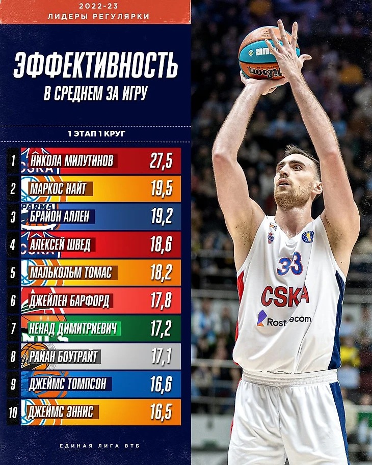 Никола Милутинов – в топе по очкам, подборам и проценту с игры. Ничего удивительного, что армейский центровой лидирует в списке самых эффективных игроков сезона.