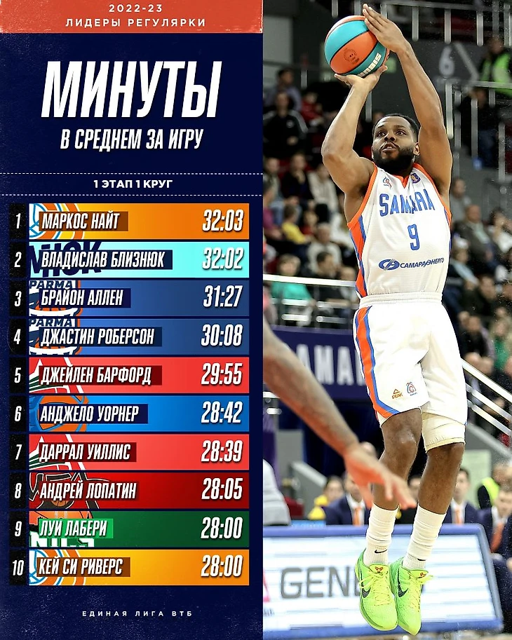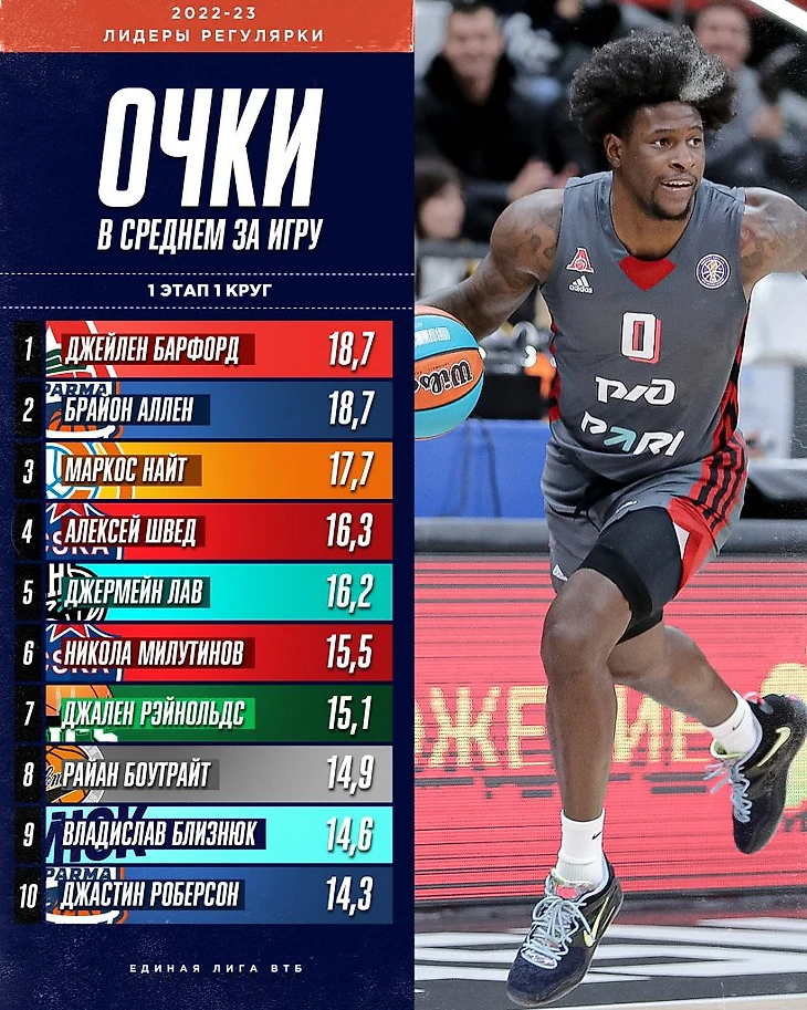 Барфорд набирает больше всех, Милутинов – самый эффективный, Эртель – лучший ассистент. Статистические лидеры в Лиге ВТБ