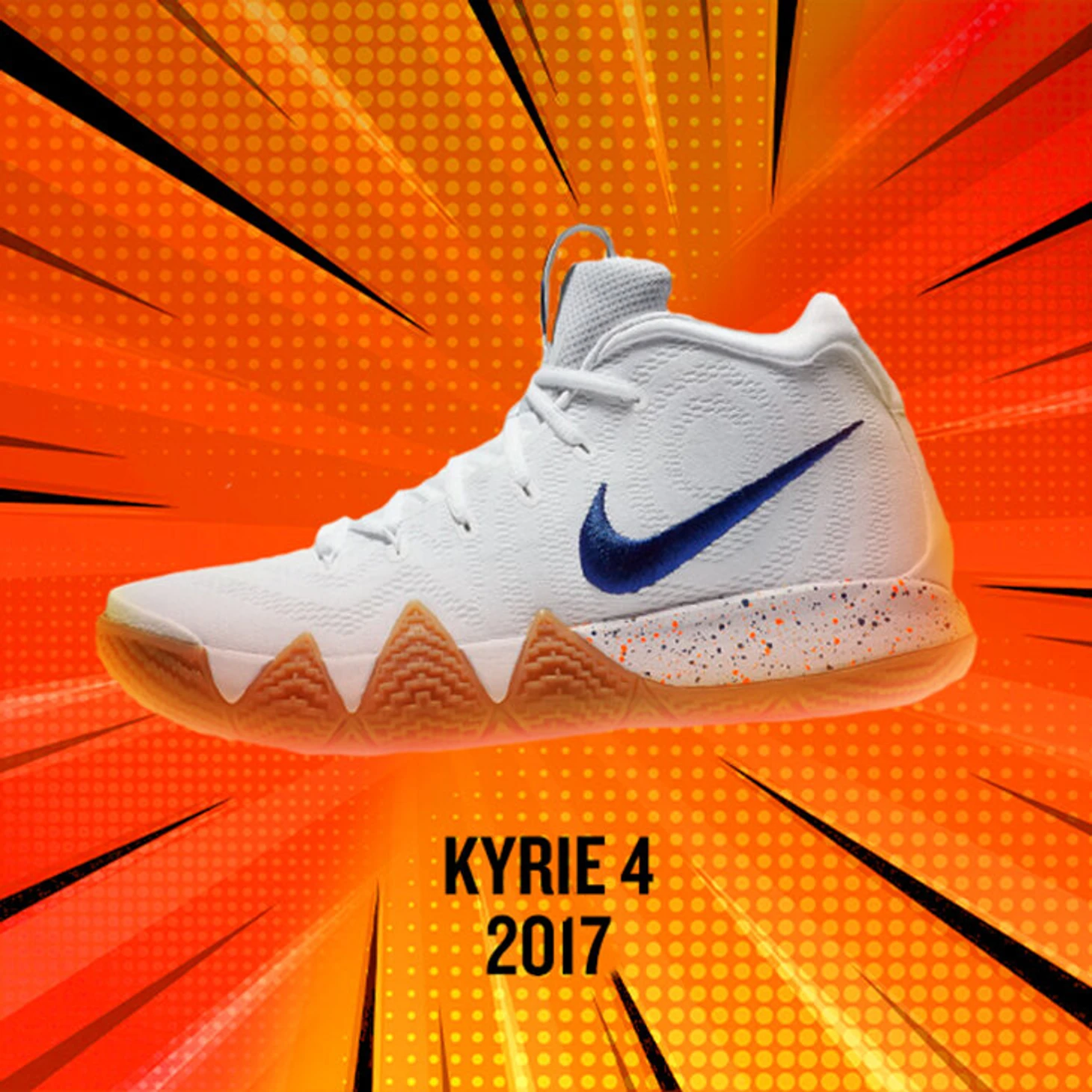 Главным желанием Кайри было улучшить и без того отличное сцепление кроссовок с паркетом, именно для этого и приглашался Нетонгкоме, но результат оказался противоречивым. Самым серьезным вкладом нового бригадира команды дизайнеров стала система Flex Groove, разделяющая подошву своеобразным зигзагом по всей ее длине. Она отлично страховала голеностоп при заваливании стопы внутрь и при сменах направления, но в том, что касается именно сцепления, Kyrie 4 не только не превзошли Kyrie 3, но и по отзывам покупателей уступили. И все же никто не торопился посыпать голову пеплом, поскольку маркетинговую кампанию дядюшки Дрю подкрепила удачная серия коллабов, самым популярным из которых стала совместная серия с хлопьями General Mills.