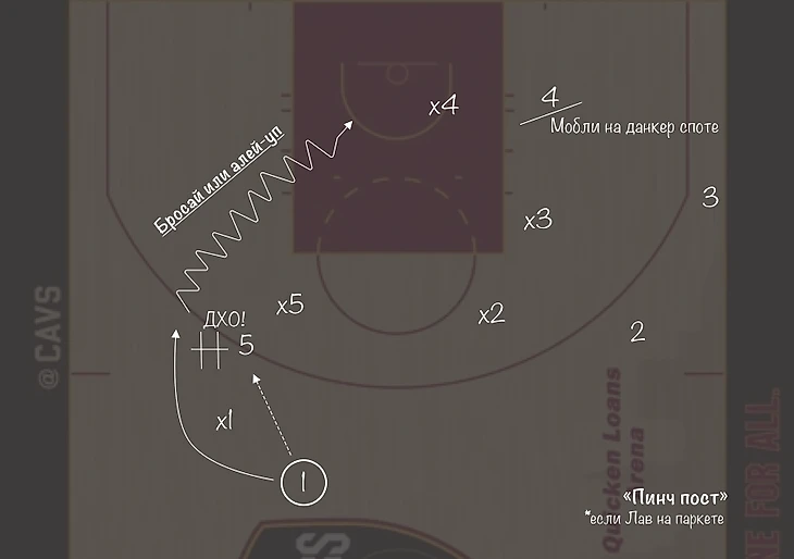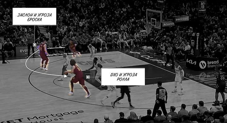 Ростер «Кэвс» не слишком богат на оффбол шутеров, чтобы по паркету кто-то постоянно наматывал круги, как Бизли в «Юте» или Хертер в «Сакраменто». Задача у «Кливленда» несколько отличается: если в «Джаз» двигают мяч до самого свободного броска с периметра, то команда из Огайо нацелена на создание пространства для звездного бэккорта. Особенно остро стоит вопрос, когда только один из них находится на паркете, без снайперской поддержки товарища.
