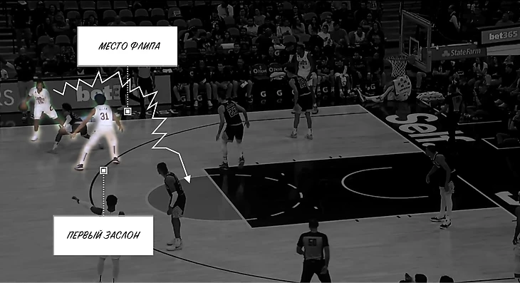 Значительно чаще офбольный скрин от маленького ставится не для освобождения пятого, а маскировки действий самого же гарда. Игрокам соперника нужно успеть разобраться, что происходит, кто кого прикрывает – этого времени обычно достаточно, чтобы телепортироваться в другую сторону.