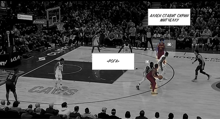 Штабу «Кливленда» приглянулся ram screen. В своей основе это нижний заслон (даунскрин) опекуну бигмена, чтобы тот успел убежать наверх и поставить уже свой заслон игроку с мячом. Разумеется, это только завязка. В «Кэвс» такую комбинацию обычно запускает Митчелл.
