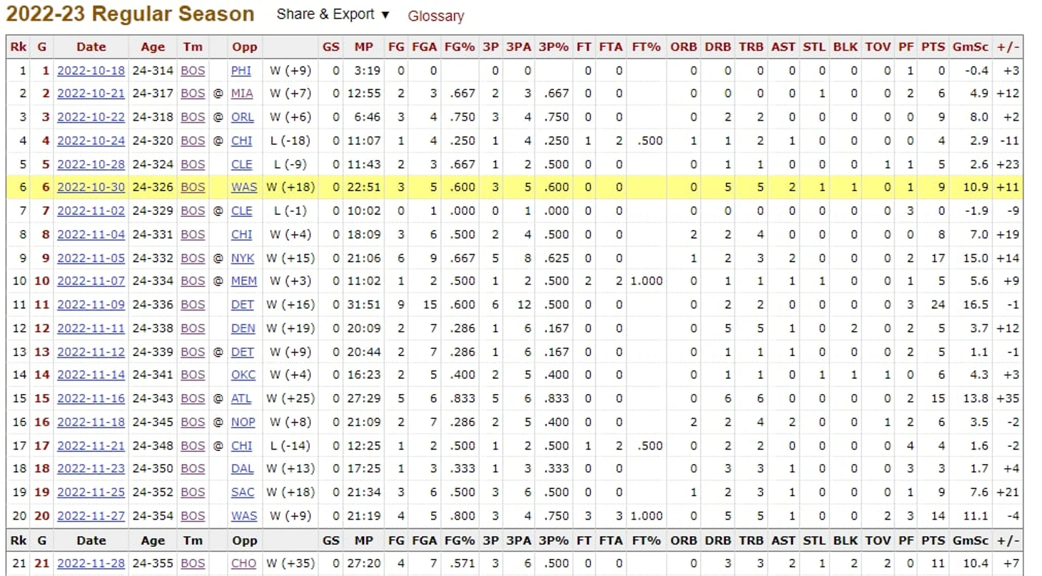 Но проблема в том, что в первой 21 игре он попал 46 из 94 дальних бросков, что составило 48.9% при 4,5 попытках в среднем.