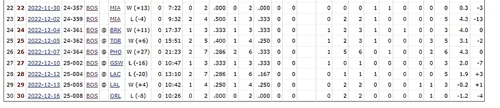 За эти 9 игр Бостон проиграл четыре раза(процент побед 55%). Столько же поражений было в первой 21 игре (процент побед 80%).