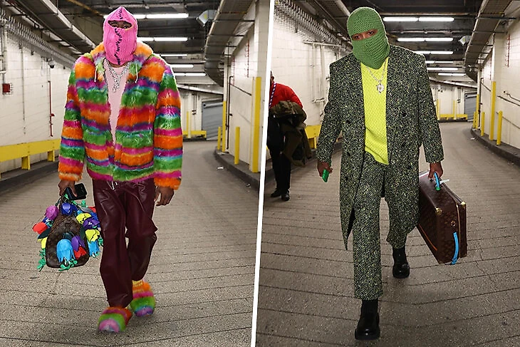 Наверное, Джеймс хотел быть похожим на украшенную новогодними игрушками и гирляндами елку (а Такер – на неоформленную, чистую елку прямо из леса?). Но получилось как-то ближе к образу попугая. Бородатого и двухметрового.