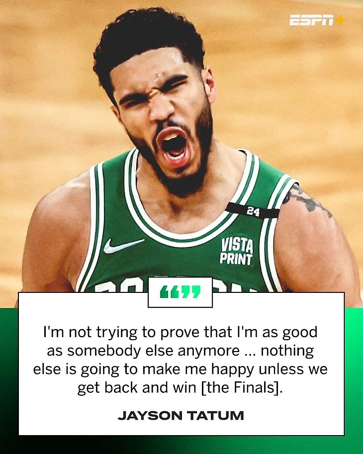 Джейсон Тэйтум: «В прошлом году вы хотели обменять одного из нас, а теперь говорите, что мы как Майк и Скотти. Мы не настолько плохие, как вы считали, но мы не настолько хороши, как Джордан и Пиппен.»