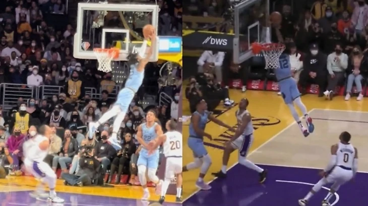 «Возможно, это лучший блок, который я вообще видел. У него ракеты в икрах» — похвалил блок-шот Моранта Леброн ESPN. На момент блока голова Джа находилась на уровне кольца!