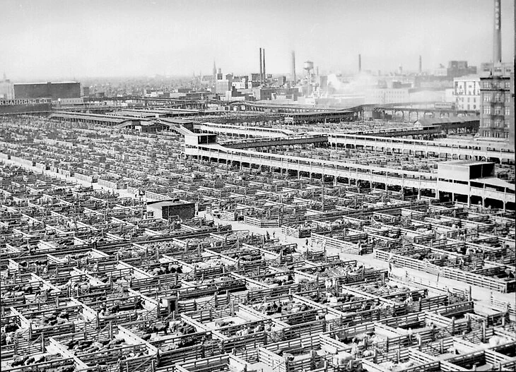 Предприятие стало одним из крупнейших производств в мире. На территории в 2,5 квадратных километра разместился огромный комплекс цехов, где трудилось более 30 тысяч сотрудников. Все они работали под гуманным слоганом: «Внимательнее к мелочам! Пропустить можно только крик животного». «Чикагская бойня» ежегодно экспортировала на международный рынок порядка девятнадцати миллионов голов крупного рогатого скота. Вопреки расхожему мнению, именно на чикагской бойне впервые было внедрено конвейерное производство, и только после по аналогичному принципу начал работать автозавод знаменитого Генри Форда, которому частенько приписывают славу изобретателя конвейера.