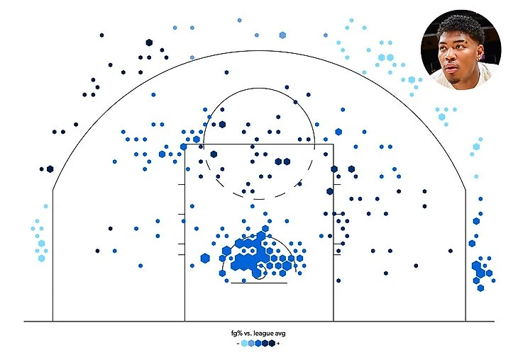 Руи неплохо стартовал – сыро, без звезд с неба, но все же неплохо. В дебютном сезоне японец выходил в старте и набирал 13.5 очков и 6.1 подборов, вплотную подобравшись к топ-5 в гонке новичков и показав себя крепким ролевиком с неплохими задатками для чего-то большего.