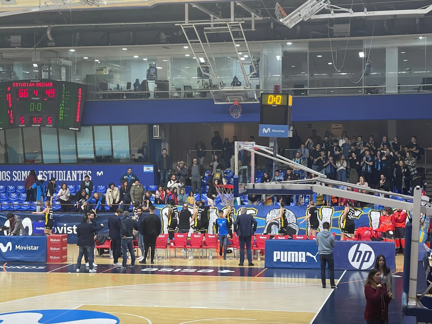 Про сам матч говорить особо нечего: классический женский баскетбол, в котором важнее разыграть комбинацию тренера до конца, а не набрать очки. Неожиданно в составе обеих команд были представители бывшего СНГ: за «Эстудиантес» играла 24-летняя азербайджанка Александра Молленхауэр, а за «Бембибре» 20-летняя украинка Дарья Дубнюк. В этом заочном споре сильнее была Молленхауэр, которая и играла почаще, да и очков принесла больше. Домашняя команда в итоге победила 66:49.