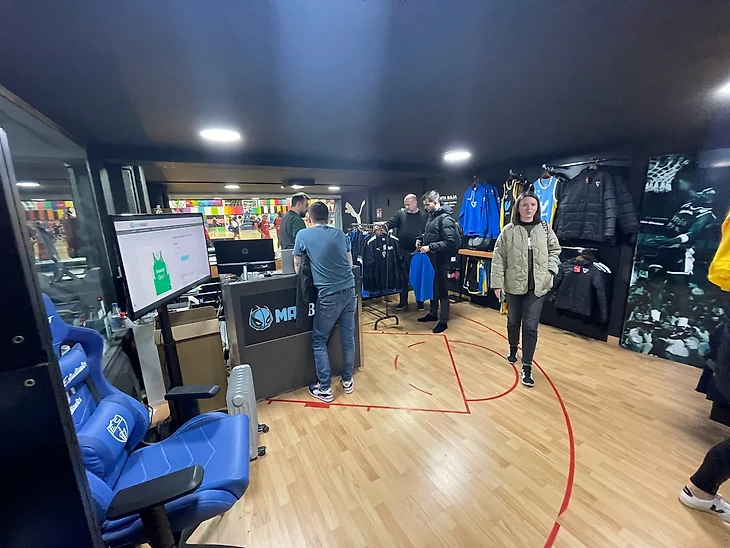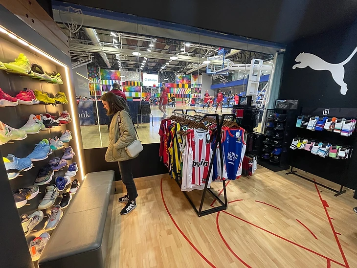 Кроме этого, большой выбор баскетбольных товаров: кроссовки, одежда и многое другое. В общем, супер-топ. А окна магазина выходят прямо на площадку, так что в теории смотреть матч можно без отрыва от шопинга.