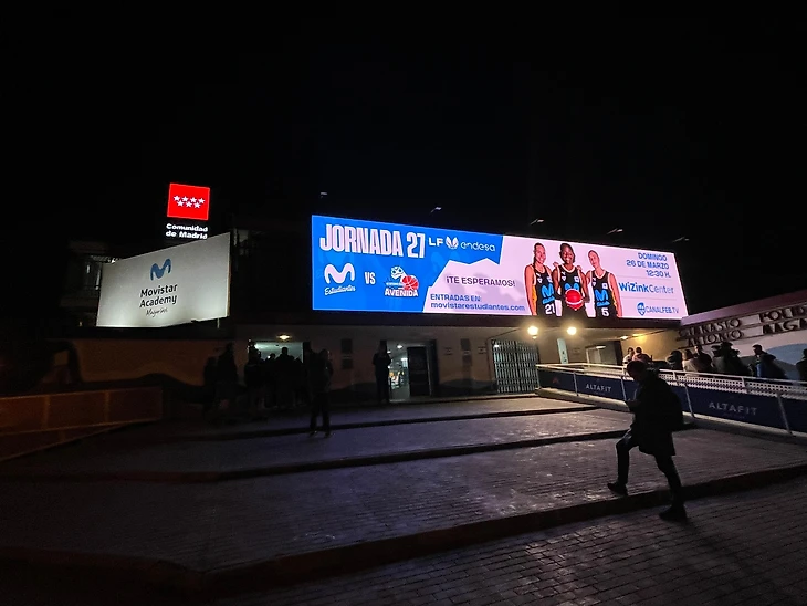Мы поехали на домашний матч «Эстудиантеса»: мужская команда играет во второй лиге, а женская – в элите. В этот вечер играла женская команда против коллектива «Бембибре» из одноименного испанского города. Домашний спорткомплекс располагается рядом с «Сантьяго Бернабеу», а на фасаде здания висит огромный экран, который сразу же обращает на себя внимание всего района.