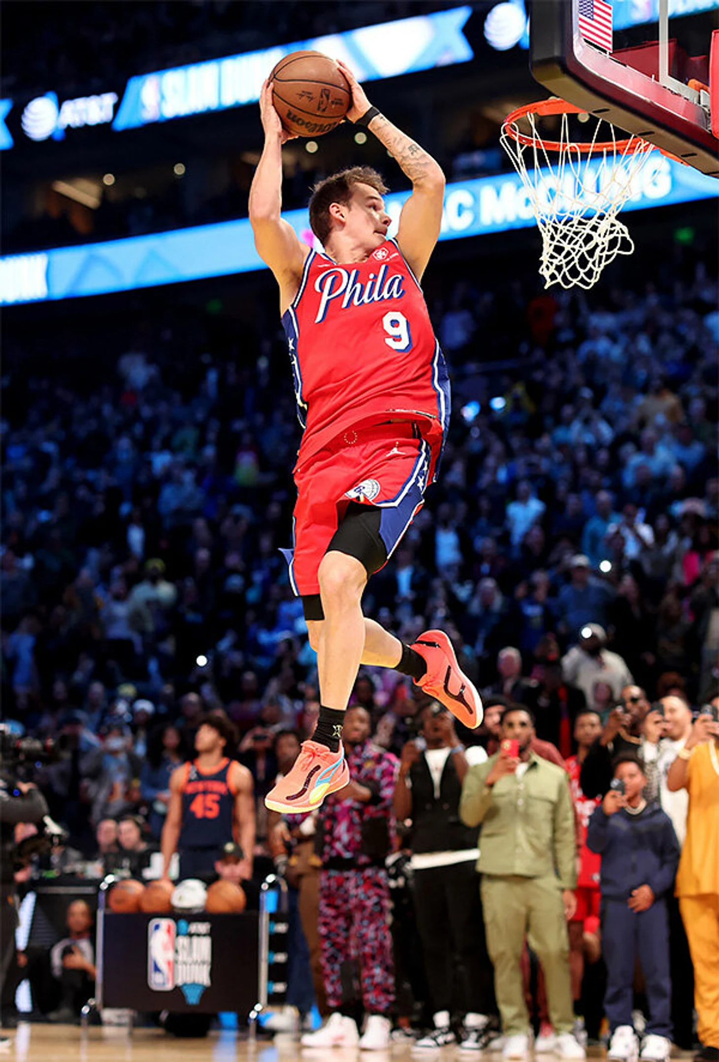 В общем, перед слэмданк-контестом было ощущение, что и он разочарует. А ведь перед конкурсом объявили, что с этого года награда победителю будет носить имя легенды – Джулиуса Ирвинга, одного из величайших данкеров в истории. Полное название, выгравированное на награде, даже включает его культовый никнейм: «Приз Джулиуса «Доктора Джея» Ирвинга победителю конкурса слэмданков». И вот кто-то получит этот трофей за какие-то нелепые попрыгушки?..