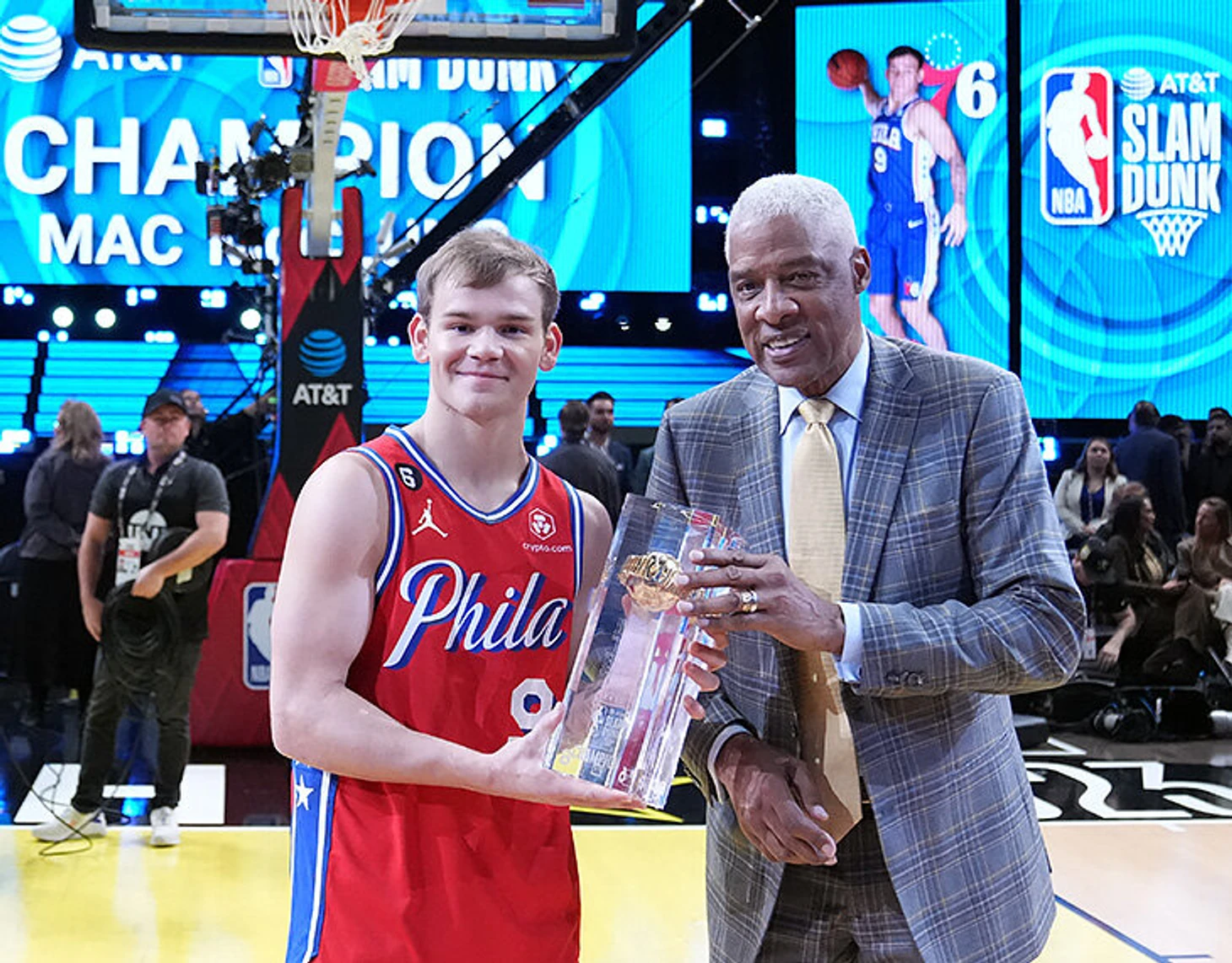 • стал победителем конкурса. И первым в истории обладателем трофея имени великого Доктора Джея, получив приз из рук легендарного форварда.