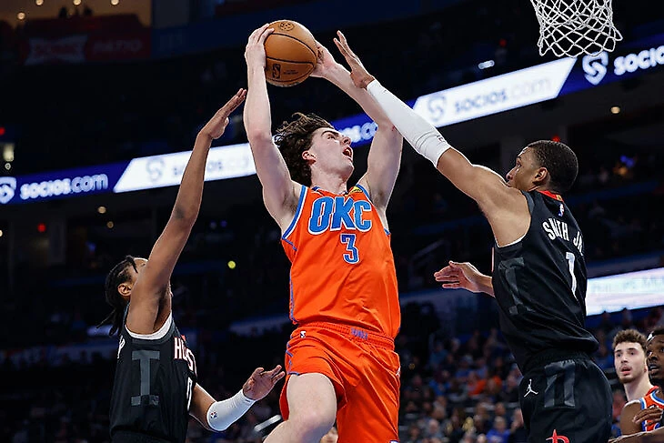 Джейлен Уильямс: смело предположу, что в горизонте 3-4 сезонов он будет более важным игроком для команды, чем Джош Гидди. Он не просто сразу заиграл, но и последовательно растет по ходу сезона. Максимально адаптивен к партнерам и разным ролям. Если начнет стабильно попадать издали хотя бы на среднем уровне, реальный кандидат на статус третьей звезды.