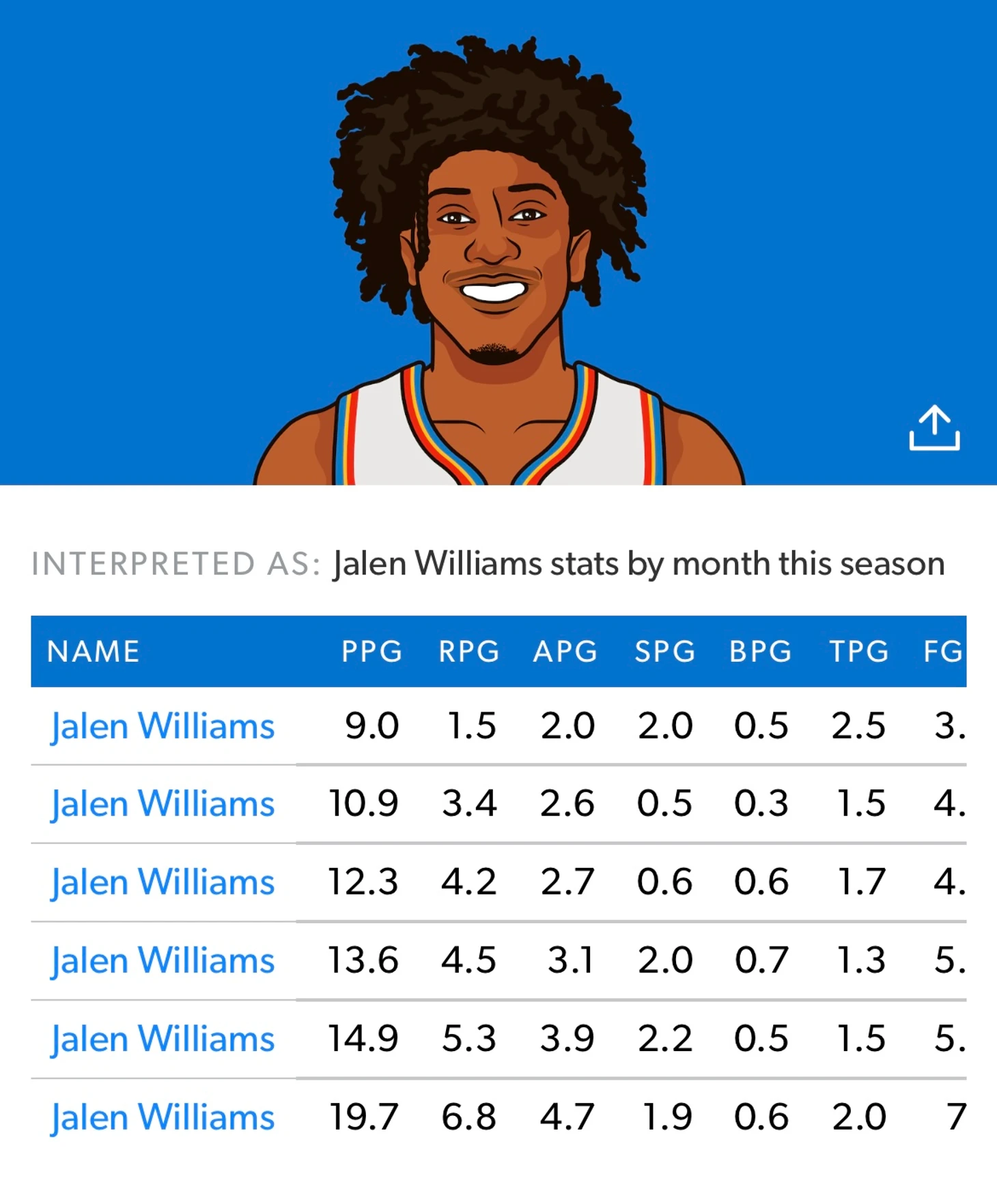 Джейлен Уилльямс - один из самых интересных молодых игроков с этого драфта. Речь даже не про хайлайты и универсальность, за которую его так и полюбил использовать Дайгно, речь про его неспешный и постепенный прогресс. Вот вроде бы все любят, когда игрок внезапно выход «из грязи в князи», но следить за таким спокойным и постепенным прогрессом уже далеко не все. А между тем, именно Джей Уилл и стал примером последнего.