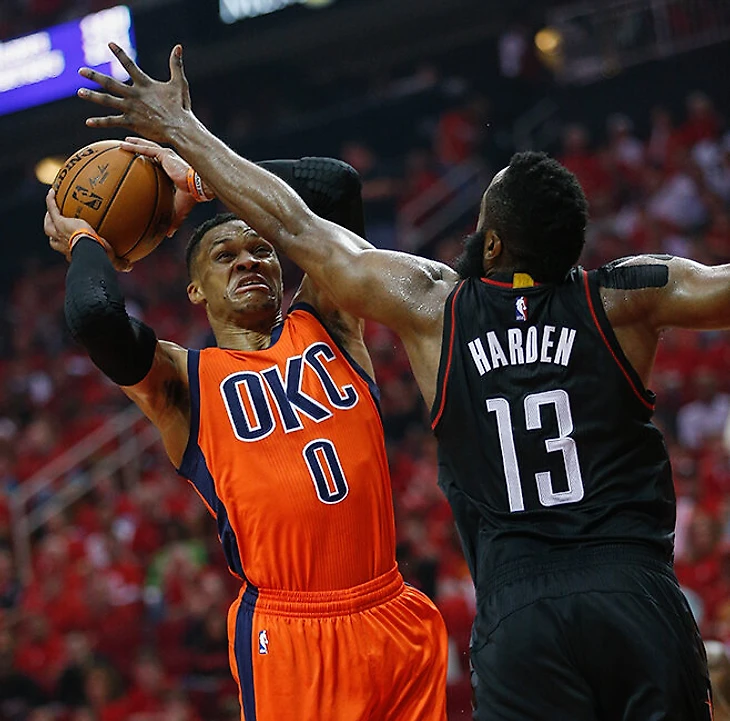 Отрывистее всех в спину Уэстбруку дышал Харден, именно Борода тогда до последнего претендовал на приз, причем преуспевал он не только по количеству потерь. Джеймс завершил сезон в качестве лучшего ассистента (11,2 в среднем за игру), а в совокупности с личной результативностью Харден в «Рокетс» был ответственен в среднем по 57,3 очка за игру, тогда как в «Тандер» Уэстбрук лично и с помощью передач генерировал по 56,6 очка. Разницу можно списать на качество партнеров, но небольшое преимущество все равно на стороне Хардена.
