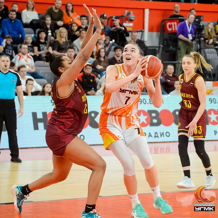 23-летняя Зайцева, дебютировавшая в плей-офф на элитном уровне, преуспела на обеих сторонах площадки (15 очков, 9 подборов, 4 передачи и 2 перехвата), а в клатче «обокрала» лидера желто-бордовых Юник Томпсон и успешно отзащищалась против Виктории Медведевой, не позволив форварду хозяек стать автором победного броска.