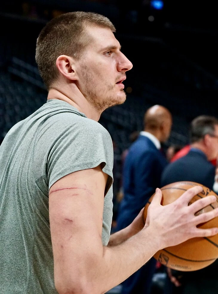 «И так на протяжении всего года. У меня одна большая царапина с этой стороны, другая осталась еще с прошлого года. Лидирую в лиге по количеству царапин. Я всегда в крови – уже привык к этому. Клянусь, со следующего сезона буду играть в эластичных нарукавниках», – рассказывал Йокич в интервью deadspin.com