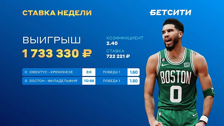 Победы «Юве» и «Бостона» принесли игроку БЕТСИТИ 1 733 330 ₽!