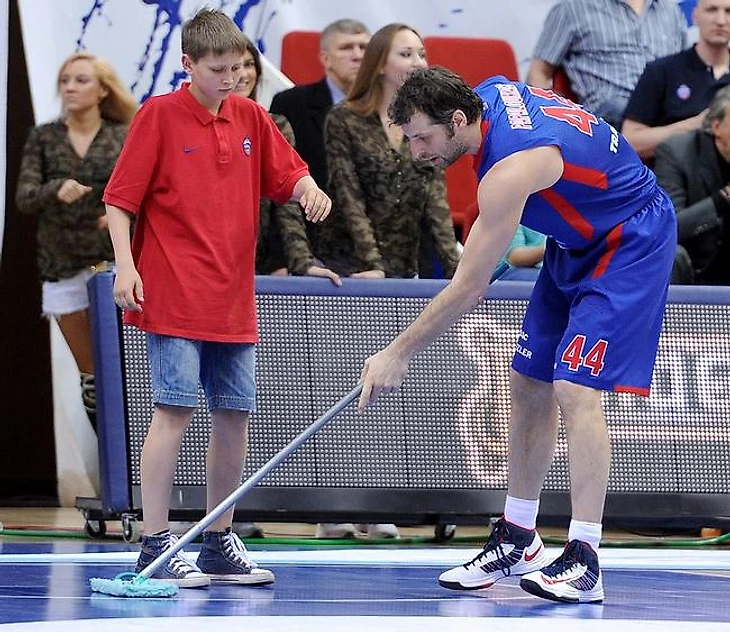 Табло, конечно, традиционно добавило антуража, но вообще оно-то, как и отстраненный горе-секундометрист, как раз не причем. Абсурд восторжествовал, когда ЦСКА победил во втором матче (благодаря еще более ценному из-за травмы вкладу Теодосича красно-синие накопили 10-очковое преимущество и сумели дотерпеть до концовки). Когда всех усилий хозяев и Фридзона совсем чуть-чуть не хватило, чтобы отыграться, приключился самый нелепый момент сезона: при счете 74:72 армейцы грамотно двигали мяч и не давали «Химкам» даже нарушить правила – Папалукас на Мицова, Мицов на Хряпу, Хряпа на Мицова, Мицов на Крстича, Крстич на Хряпу, Хряпа на Папалукаса – тот отдал Воронцевичу прямо под кольцо… но Андрей промахнулся, и «Химки» забрали подбор. Если бы хозяева забили (у них оставалось для этого куча времени), то, наверное, Воронцевича бы линчевали прямо в раздевалке ну или подвергли какой-нибудь изощренной итальянской пытке.