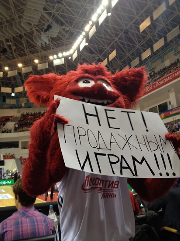 Сумасшедший маскот краснодарцев Зубастик вышагивал перед гостевым сектором с храбрыми посланиями.