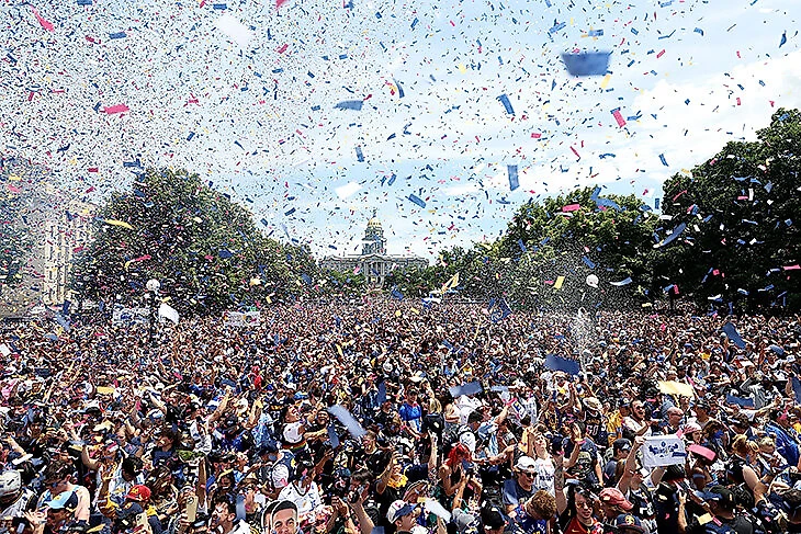 Денвер ждал первого титула баскетбольного клуба 47 лет. Поэтому на чемпионский парад съехалось – по предварительным оценкам полиции – от 700 тысяч до 1 миллиона болельщиков (население города составляет 710 тысяч).