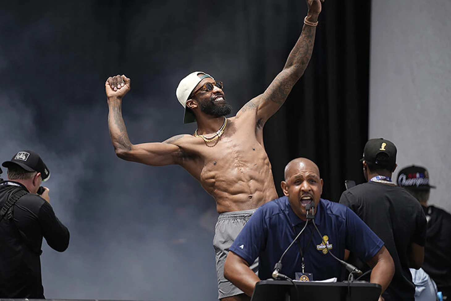 Несмотря на выступление в финальной серии, Майкла Портера все же позвали на парад. К дизайну праздничных маек «Наггетс» подошли с отрицательной креативностью, но отразили суровую реальность: «Пришли, увидели, победили».