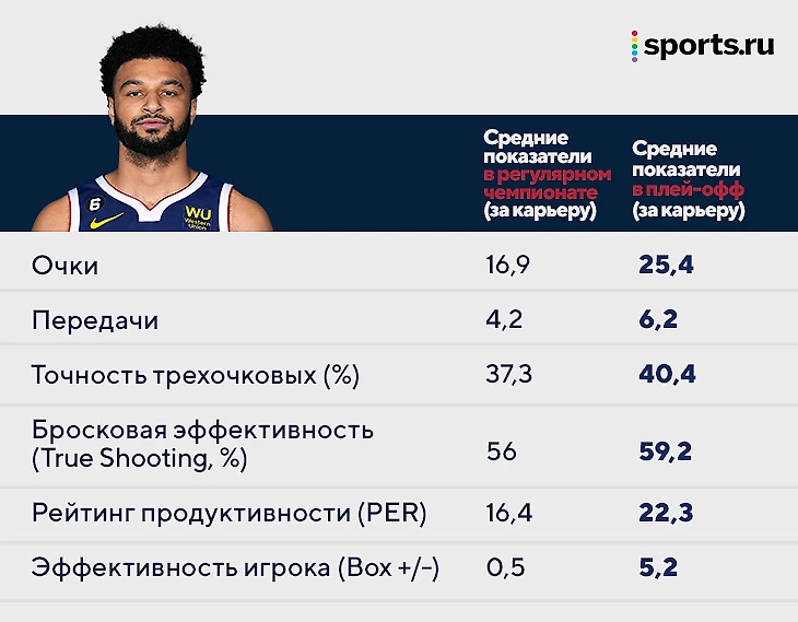 Добавьте к этому фактор Йокича, вместе с которым они стали первым дуэтом в истории НБА, в котором каждый из пары набирал в плей-офф 25+5+5 и оформил трипл-дабл с 30 очками.