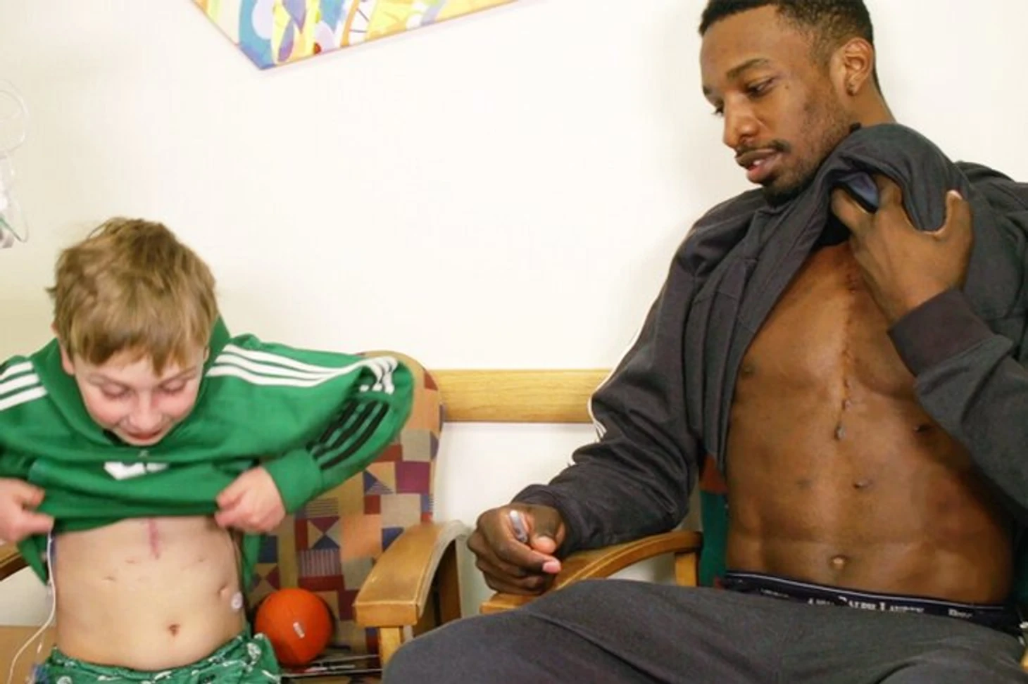 Такое отношение помогло мне. Я решил, что отныне сделаю этот шрам символом своей новой жизни. Каждый раз, когда я буду работать в зале, я буду снимать майку и работать перед зеркалом. Так я начал потихоньку вылезать из депрессивной ямы, в которой оказался ранее. Позже, когда я работал на тренировочной базе «Селтикс», некоторые долго не могли привыкнуть к этому. Шрам все еще выглядел уродливо. Ко мне подходили Гарнетт, Пол Пирс, Кортни Ли и некоторые другие ребята, просили надеть майку, спрашивали, зачем я все это делаю. Но потом они все поняли, стали подбадривать меня. «Бостон» вообще очень помог мне. Клуб сработал не только профессионально, но и по-человечески».