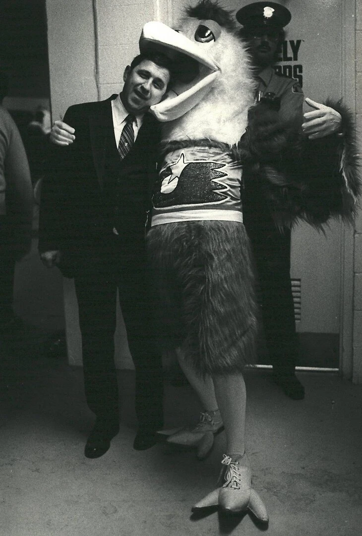 На этом переодевания Бремена не закончились. В 1982-м он мелькнул на Супербоуле в образе маскота Цыпленка КГБ (не имеет никакого отношения к известному силовому ведомству, так называлось радио, на котором впервые засветился этот персонаж).