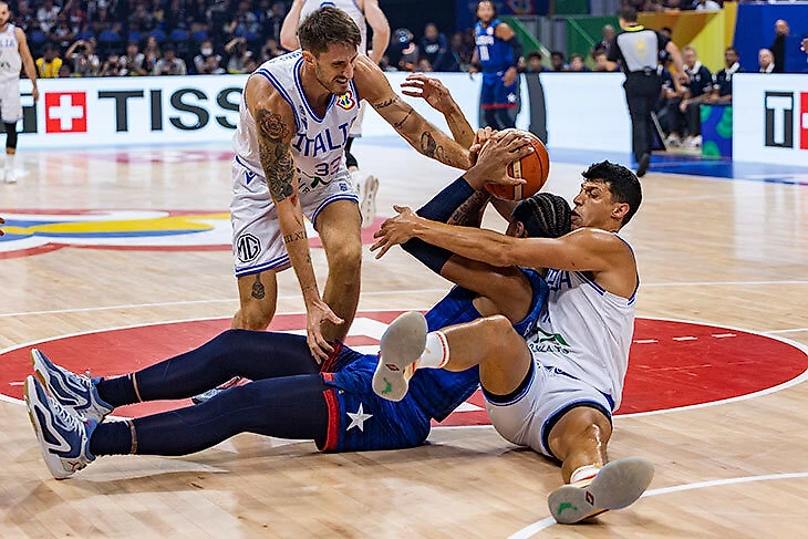 По ходу всего турнира я не переставал удивляться тому, насколько игрокам НБА тесно на площадке международного образца. Трехочковая дуга хуже работает как способ выманить соперника из-под кольца. Позиция в защите восстанавливается проще, бросать через руку приходится чаще. В позиционном нападении находить лазейки гораздо тяжелее без продвинутого движения мяча, а на дриблинге привычные маневры заканчивались утыканиями в нескольких оппонентов.