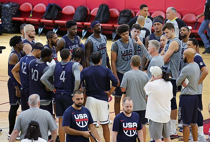 Внутри состава сборной США на ЧМ-2023 видна логика — этот парень будет упираться в защите, этот будет страховать и блокировать, этот умеет зарабатывать фолы, этот неплохо атакует со средней дистанции. То есть очевидно понимание, что по функционалу игроки желательно не должны дублировать друг друга, должны уметь плотно защищаться, а пятерки должны сохранять баланс и вариативность. Но все подобные представления – это вилами по воде, поскольку ты не видел игроков внутри серьезного баскетбола по канонам ФИБА.