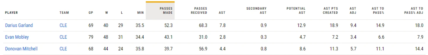 В списке центровых он в топ-6 по количеству передач. Правда, в топ-5 НБА занесла Рэндла, который от центрового имеет только задницу, но ладно, Мобли выше Адебайо, Таунса и Эмбиида. Каждый из них неплох в передачах, особенно Бэм, но Эван не хуже, просто, в отличие от «Хит», у «Кливленда» нет движения и забеганий, которые есть у «Майами».