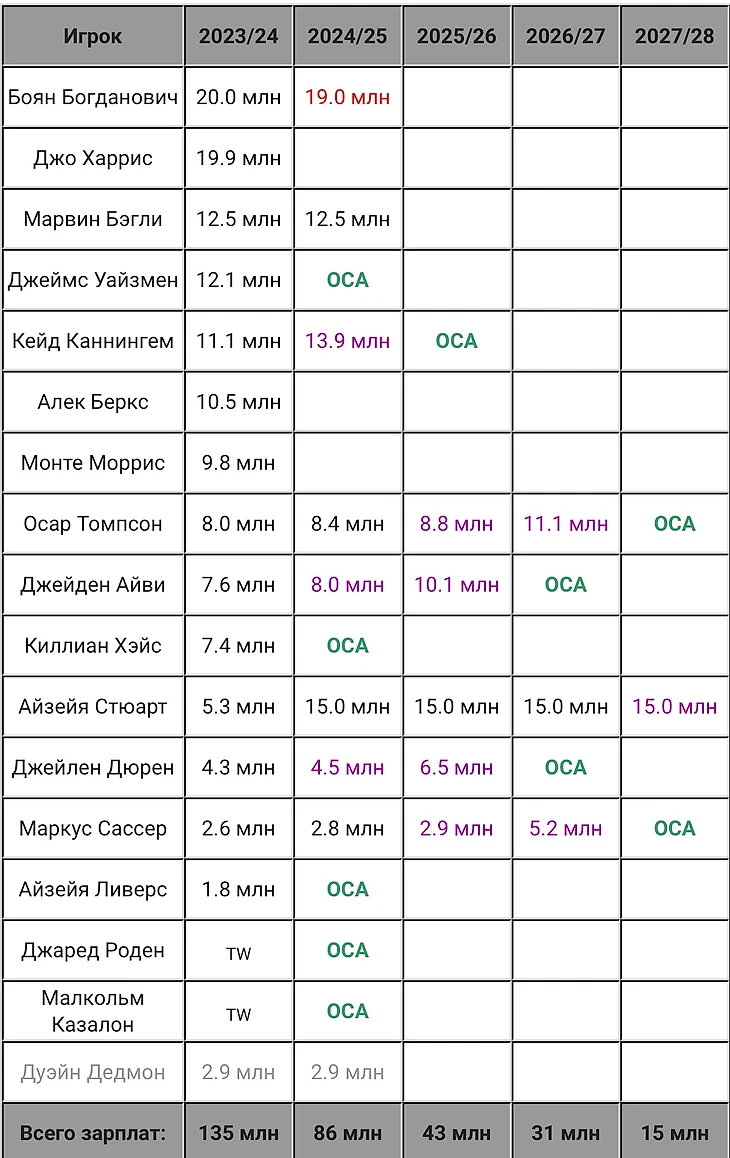 И все это выливается в вонючую жижу, где есть франчайз, но он травмат, где есть талантливый большой, но за ним два увольня, которые получают на двоих 25 млн, а играют на 2. И этот список можно продолжать до бесконечности.