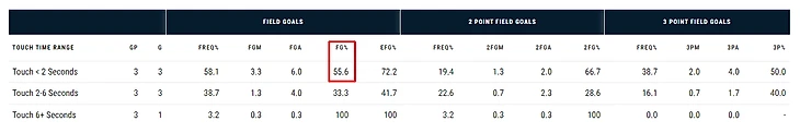 Клэкстон, разумеется, не был претендентом на DPOY год назад, и это лишь его помутнение, но все же он весьма хорош. Ник тоже ограничен (хотя в колледже поливал из-за дуги стабильно) и бросает 97,4% в краске, являясь самым эффективным игроком прошлого сезона. Притянуто за уши, но у него единственного среди игроков, сыгравших достаточное количество времени, процент попадания был выше 70%.