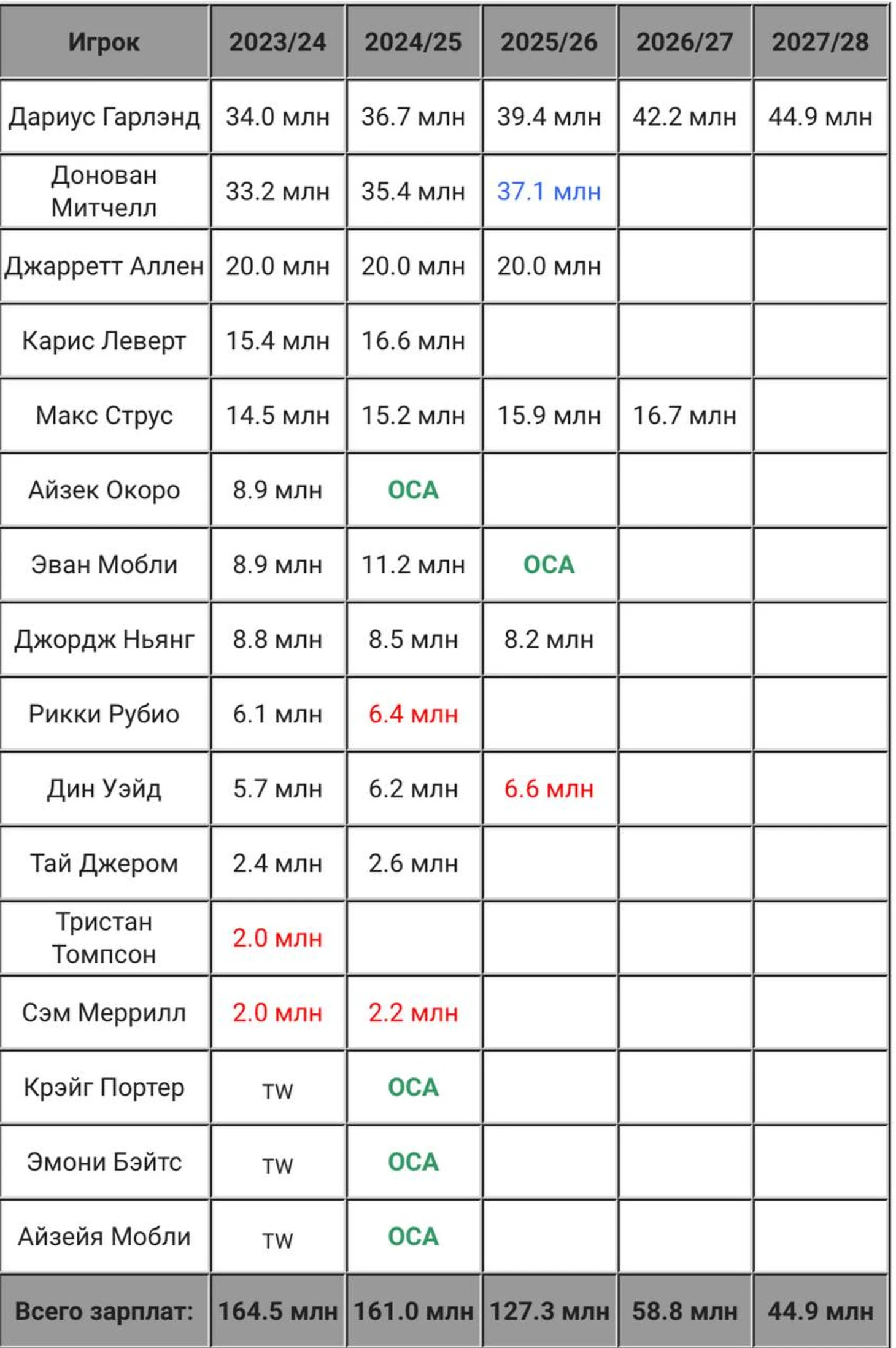 …самое смешное будет в случае ухода Митчелла в 2025 году: активов нет, звёздные СА сюда не приедут, Гарланд и Мобли могут тильтануть и запросит обмен. И по итогу опять будет безнадёга, уныние, разруха. Как вы думаете, нужен ли такой трейд, который может привести к падению команды уже через два года? Решать вам».