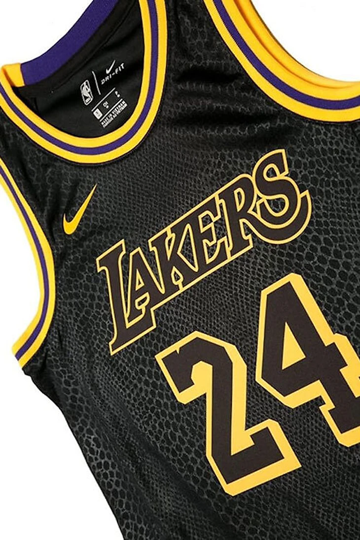 Наверное, ценность данного комплекта и значимость его дизайна с годами будут только расти. Первая City Edition «Лейкерс» посвящена, конечно же, Кобе Брайанту, о чем несложно догадаться, взглянув на змеиный принт, покрывающий форму. Так же можно углядеть – тогда еще – 16 звезд по числу имеющихся титулов. От тех, что были завоеваны командой, когда она базировалась еще в Миннеаполисе, «Лейкерс» традиционно отказываться не стали.
