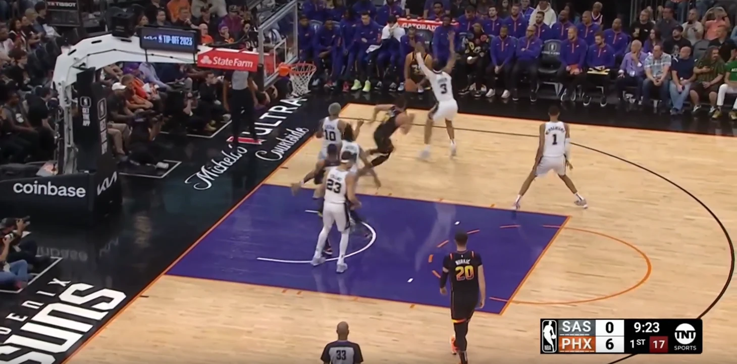У Вемби 6 попыток трешки за игру и всего 2 реализованы, а всего у него 12 бросков с игры. Почему половина бросков 222 сантиметрового центрового это трехочковые. Почему он не толкается под щитами и не (не побоюсь этого слова) фармит подборы. Это для меня остается загадкой.