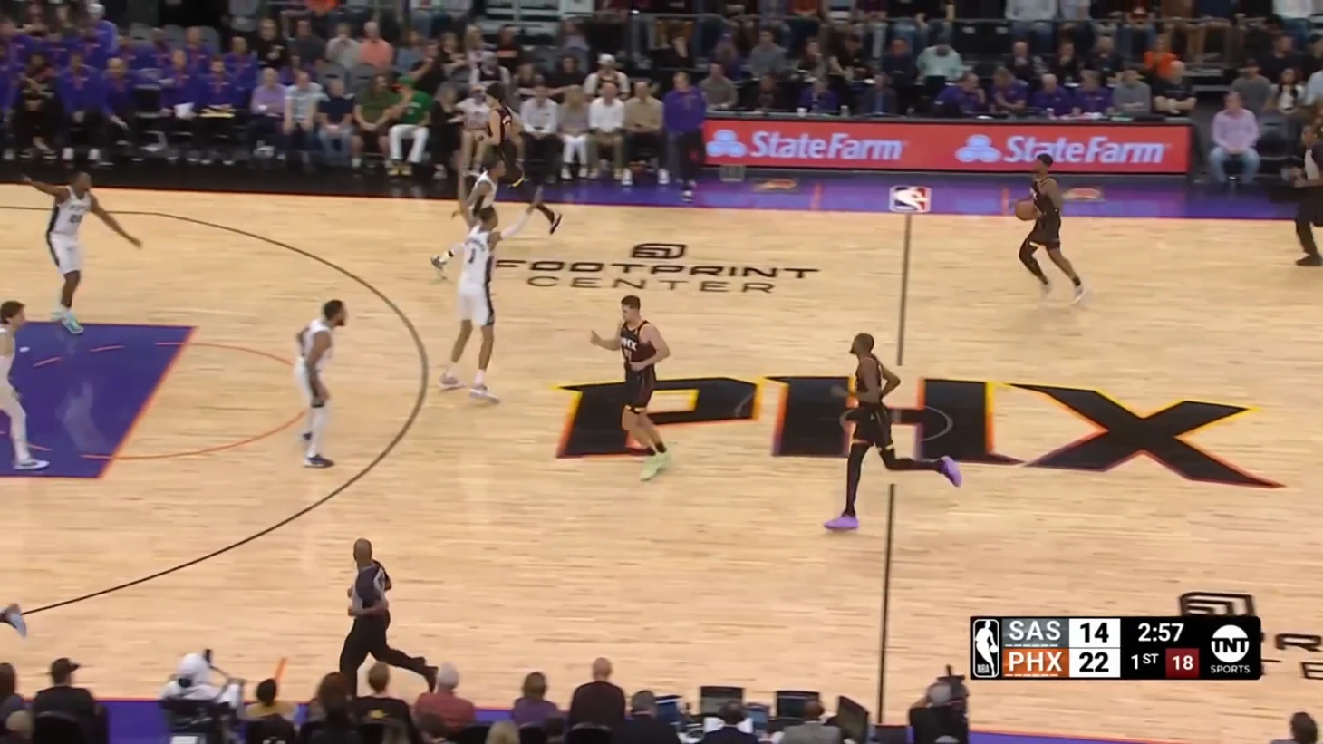 На его фатальную ошибку в конце можно не обращать внимание так как на него выдвинулись три игрока, он был зажат в углу и один из них возможно сфолил перед отбором мяча. На протяжении всей игры Дюрант тащил, и без Букера и Била смог показать нормальную игру (26 очков, 12 из 19 с игры).