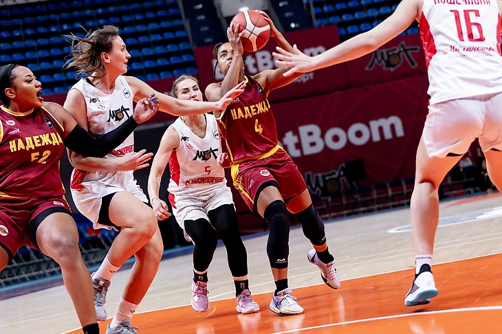 В очном противостоянии МБА и «Надежды», правда, свои сильные качества гости смогли проявить лишь в третьей четверти, а вся остальная часть встречи прошла под диктовку хозяек (68:50).