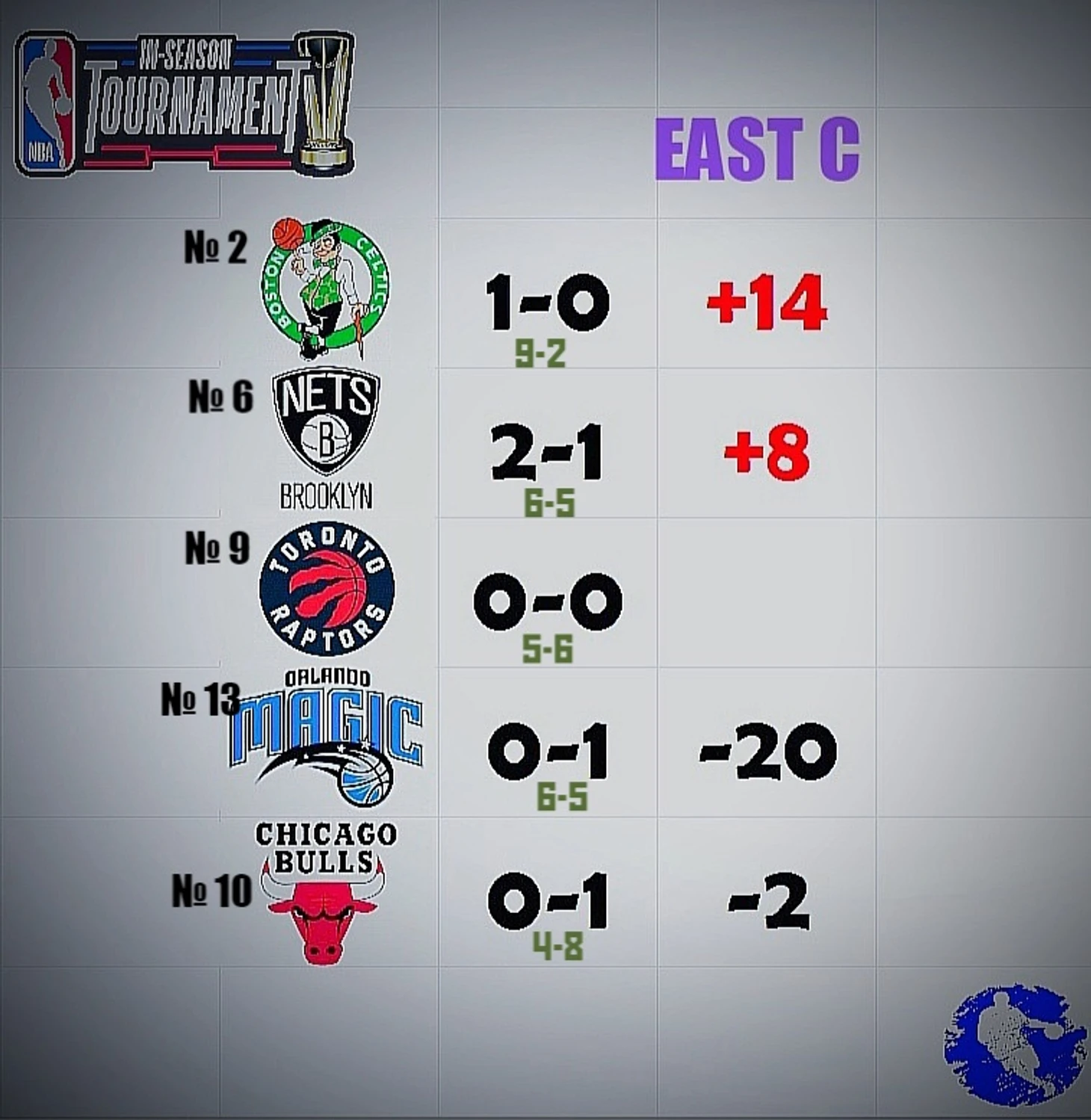 На сегодня в Кубке НБА провели уже три игровых дня и 26 матчей. Уже в эту пятницу (в России - ночью в субботу) лига начнёт бесить староверов своими кричащими паркетами ещё на 11 аренах. Кого-то мы уже видели из хозяев в турнирных футболках на их ярких полянах. Некоторые успели отыграть в Кубке уже по три матча. А вот канадцы - единственный клуб не сыгравший ещё ни разу во внутрисезонке, зато дальше - все вторники и пятницы без пропусков будут для Торонто исключительно матчи Кубка. Давайте посмотрим, с чем каждая из пока 30 команд ассоциации подходит к этой пятнице