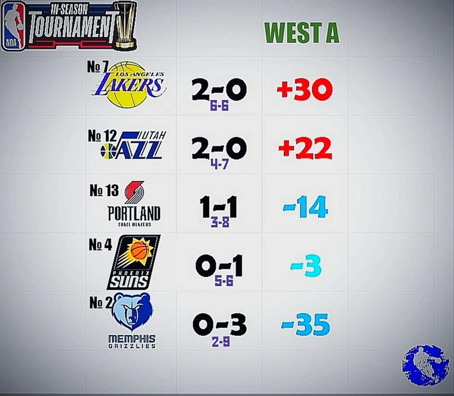 - На всех картинках слева вверху от лого команд будет их место в итоговой турнирной таблице прошлого сезона (в регулярке). Например: у Лейкерс - это №7 и так далее.