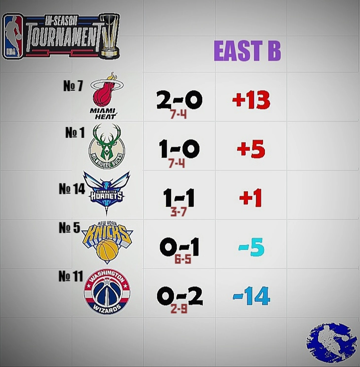 В группе «В» на ист-сайд лидируют те, кто и должны: Майами и Милуоки. А их личная встреча будет в последний день завершать групповой этап 28 ноября. Главная интрига - с оттяжечкой... если не будет сюрпризов до этого