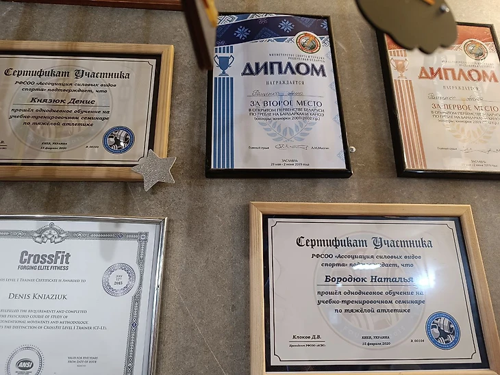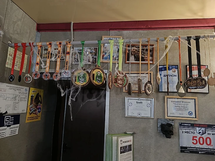 Впрочем, на входе отмечаем другое - сколько много у PoisonBox и его тренеров всевозможных наград. Есть среди них и те, которые дарованы за успешное участие в том числе в международных турнирах. Денис и Наталья удачно выступают в паре, а такие соревнования в кроссфите также есть.