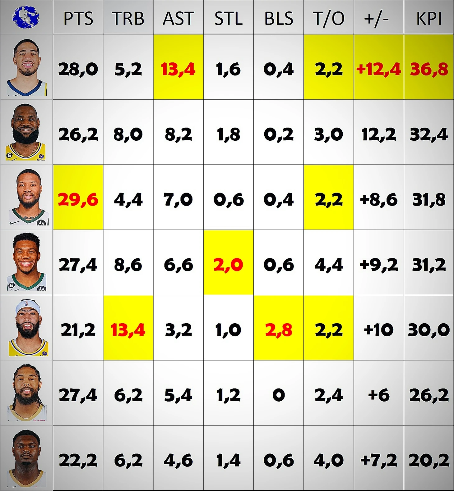В этой гонке самых полезных (как и в последние сезоны во всех таких рейтингах) Джеймс не выглядит фаворитом, но забрался он высоко в индивидуальном табеле Кубка. Первые 7 параметров этой таблицы известные и расшифровки не требуют, а вот КРI многие считают по-разному, поэтому лучше в нашем случае привести формулу.