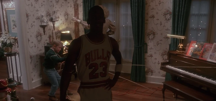 И у него есть картонный силуэт Майкла Джордана, который играет в фильме важную роль – помогает Кевину создать иллюзию того, что в доме полно народу.