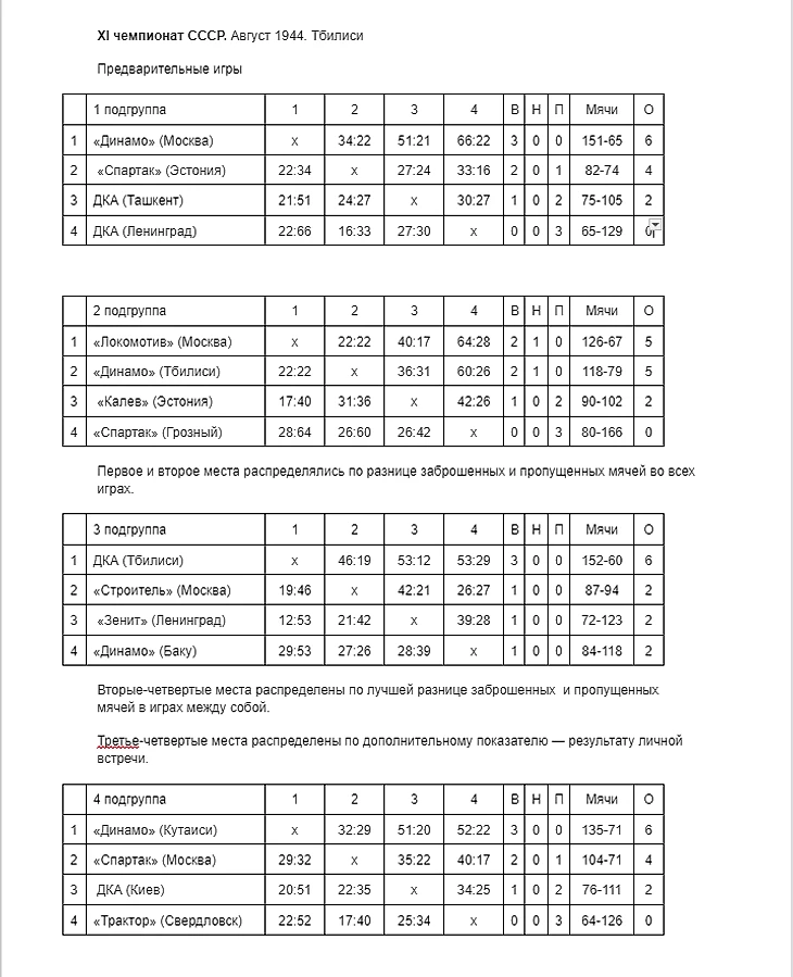 Красная Армия все дальше и дальше гонит фашистские войска на запад. Оживает спортивная жизнь страны. Баскетбольная – конечно тоже. В июне 1944-го проводятся чемпионаты областей, краев, республик, в июле свои кубки разыгрывают профсоюзы и спортивные общества. 1 августа Москва 20 залпами из 224 орудий салютует в честь освобождения Каунаса, будущей баскетбольной столицы Литвы. На следующий день в Тбилиси стартует первенство страны, главное баскетбольное событие года. Через неделю чемпионом СССР впервые становится грузинская команда – ТДКА (Тбилисский Дом Красной Армии).